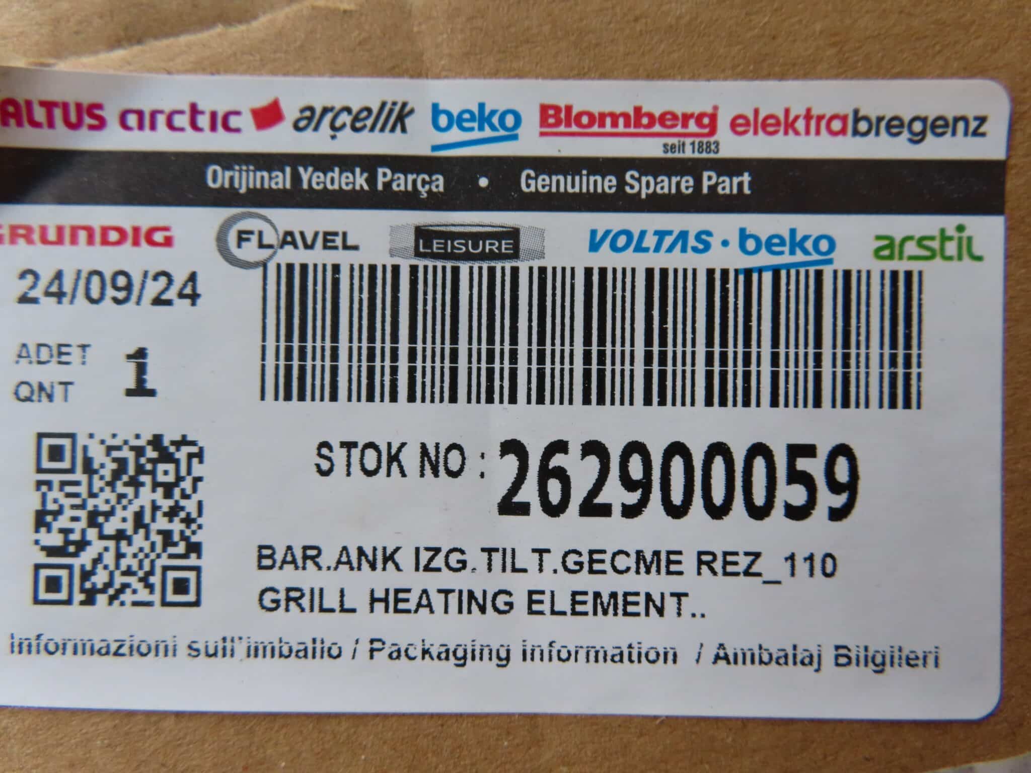 BEKO OVEN TOP GRILL HEATING ELEMENT 262900059
