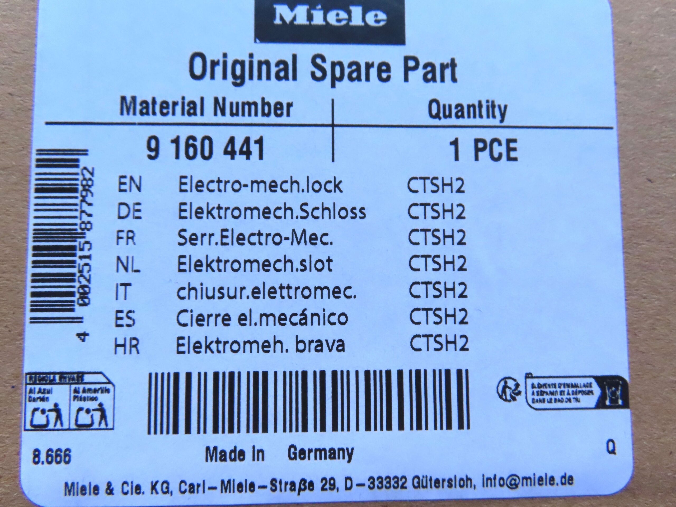 MIELE DISHWASHWER DOOR LOCK 09160441